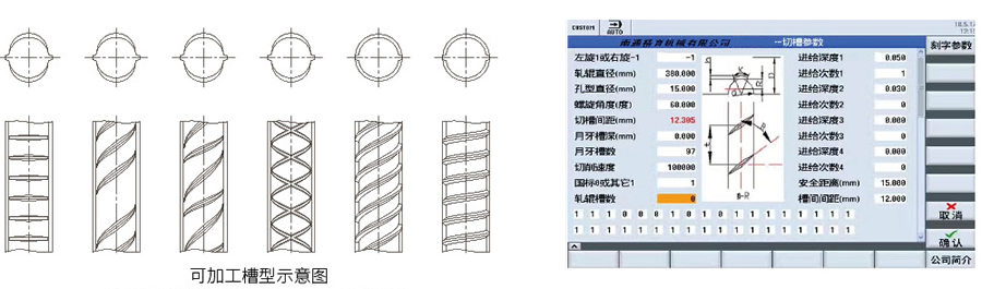 数控系统内嵌入了我乐鱼app登录入口,乐鱼(中国)与西门子乐鱼app登录入口,乐鱼(中国)合作开发的自动编程软件,只需输入轧辊直径、规格等参数,自动编辑生成月牙槽加工程序和刻字程序。减轻了烦琐的编程工作,提高加工效率。